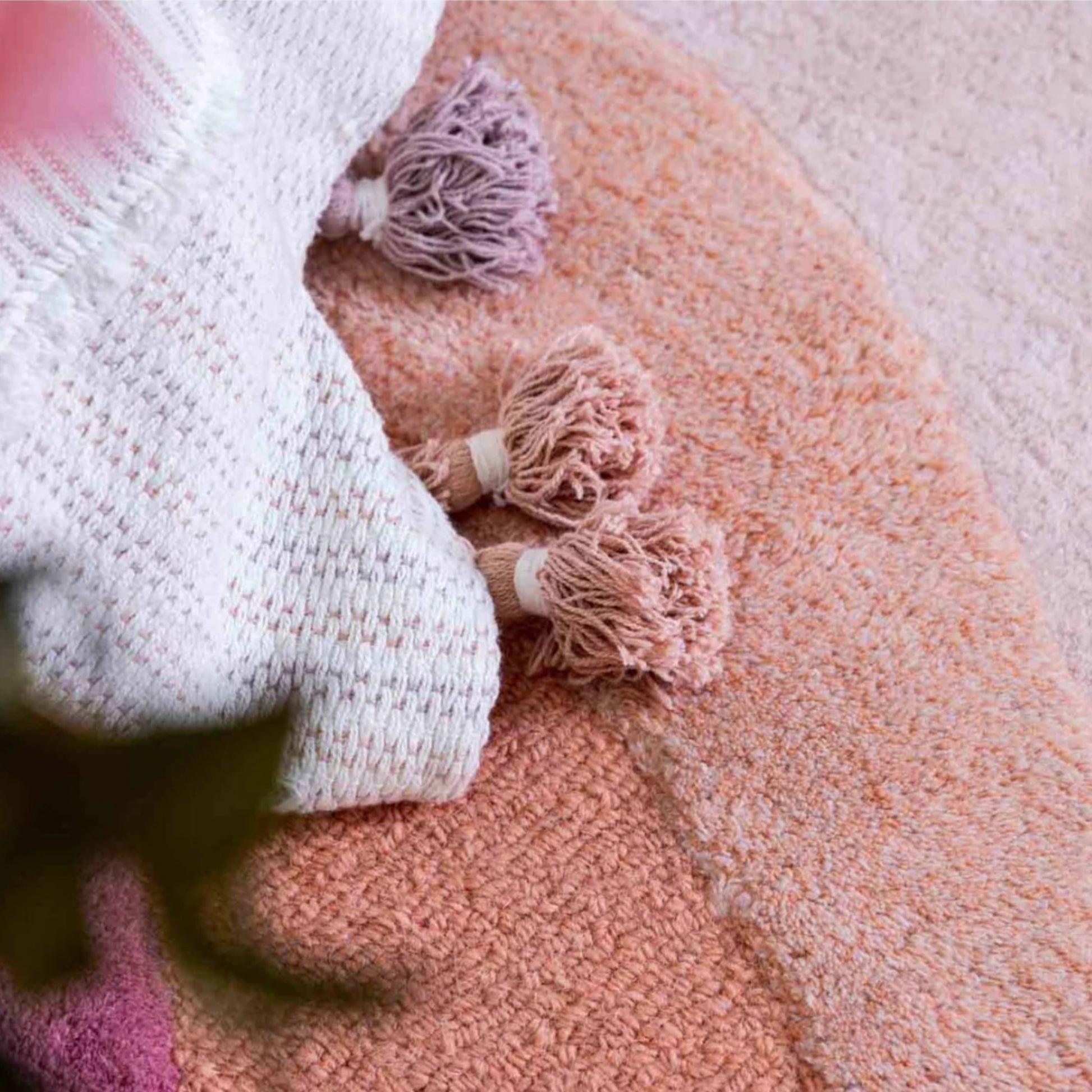 Dive into movement and color with the Spectrum Drift Area Rug, a celebration of flow and form. Its soft undulating bands in pink, blue, and lilac sweep across a neutral base like watercolor ribbons, bringing rhythm and visual energy to any space. This abstract design balances vibrancy with elegance, perfect for interiors that express creativity with contemporary charm.
