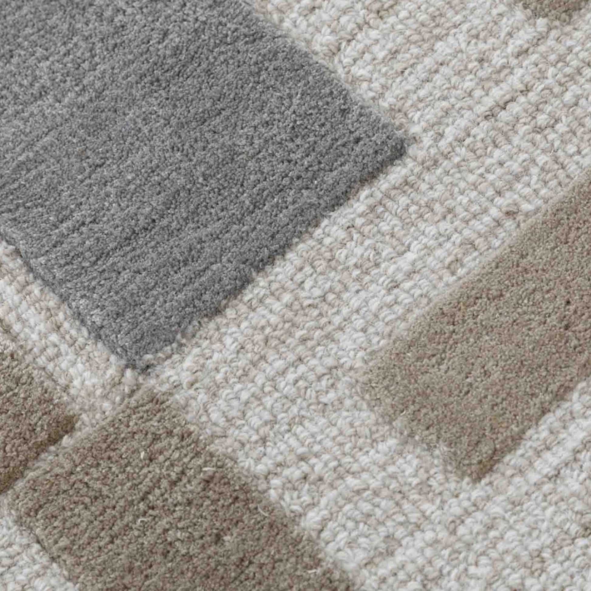 The Ash Angle Geometric Rug celebrates minimalist geometry with a textured twist. Its fragmented arrangement of trapezoids and rectangles in charcoal, stone gray, and taupe feels like urban architecture rendered in soft fiber. The asymmetry invites the eye to wander, making it a subtle statement piece for spaces that value quiet boldness.