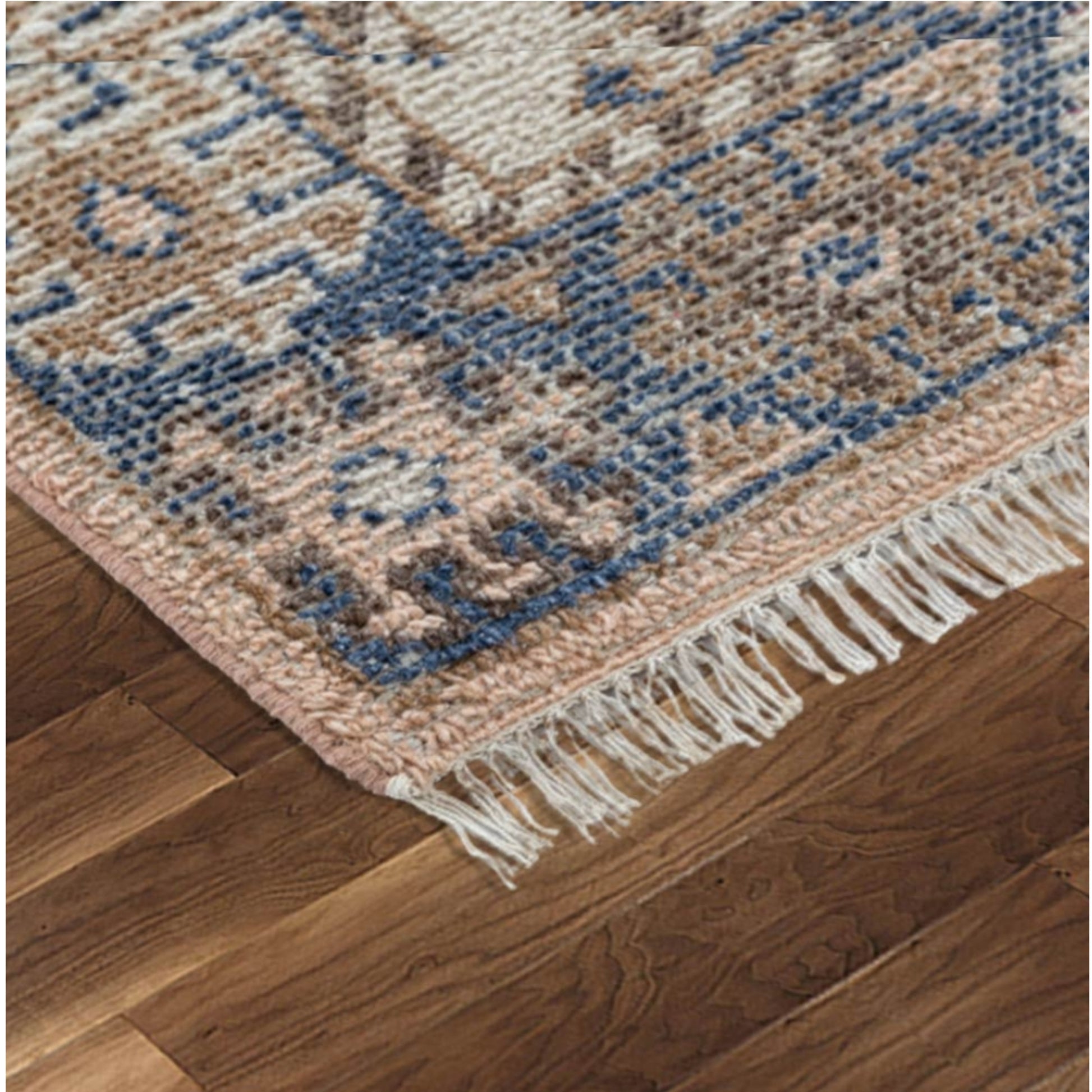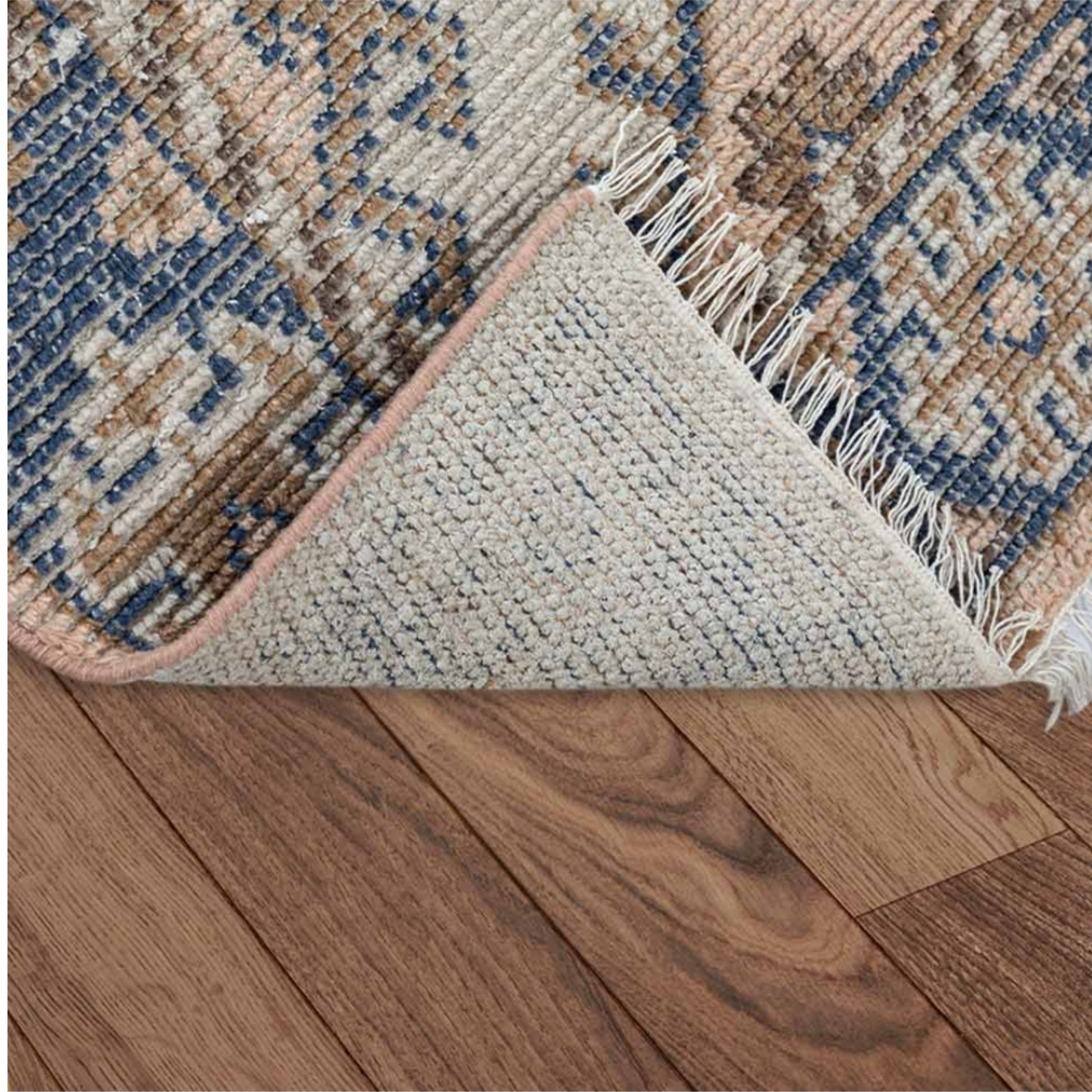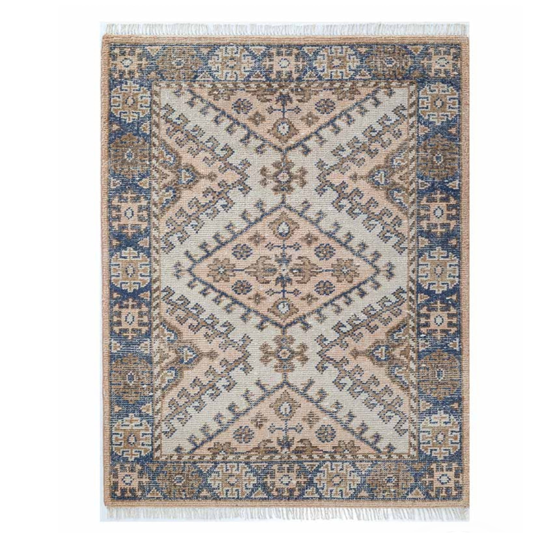 A symbol of journey and symmetry. The Nomad Crest Rug draws inspiration from ancient Persian motifs, reimagined in soothing hues of beige, blue, and brown. The central diamond medallion radiates outward into a network of nested geometry and floral flourishes—each form echoing balance and craftsmanship. Its faded elegance speaks to tradition touched by time, offering vintage charm with contemporary calm.