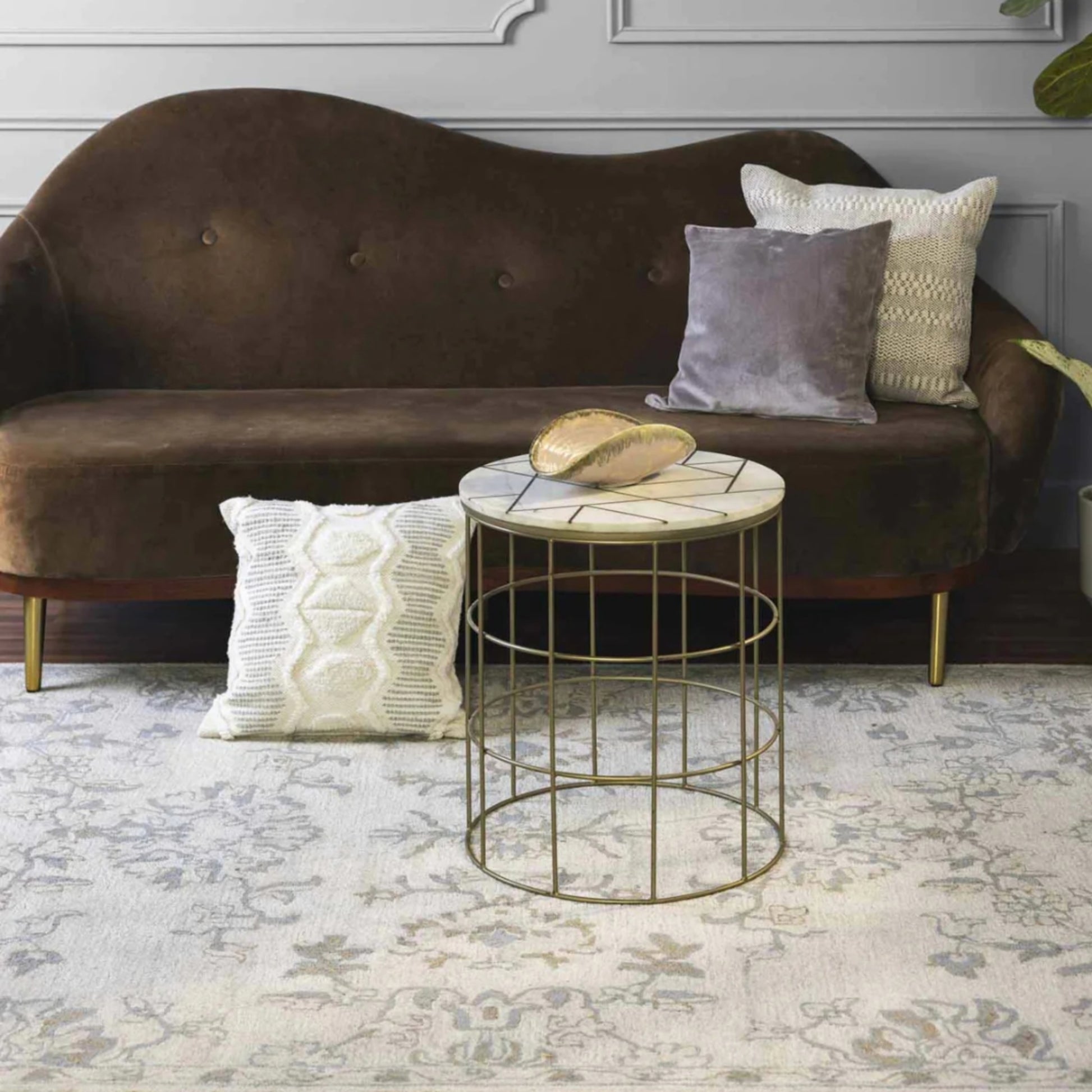 Graceful symmetry meets heritage charm in the Blue Medallion Vinework Rug. Its soft blue field is delicately etched with blooming florals and curling vines in stormy gray and deep sapphire. The central medallion anchors the piece like a blossom in full bloom, framed by ornate borders inspired by classic Persian garden motifs. It’s a nod to traditional aesthetics while still feeling fresh and versatile.