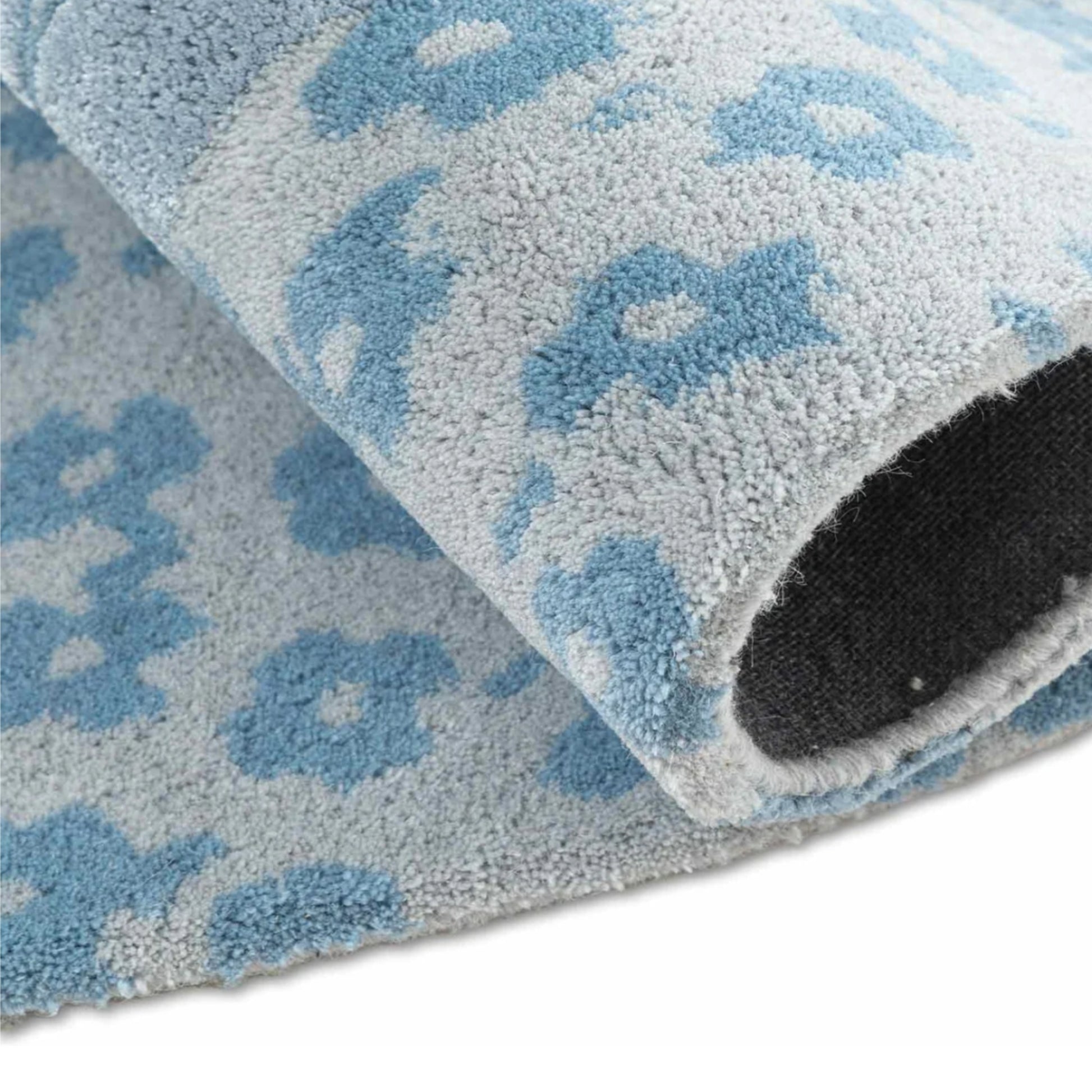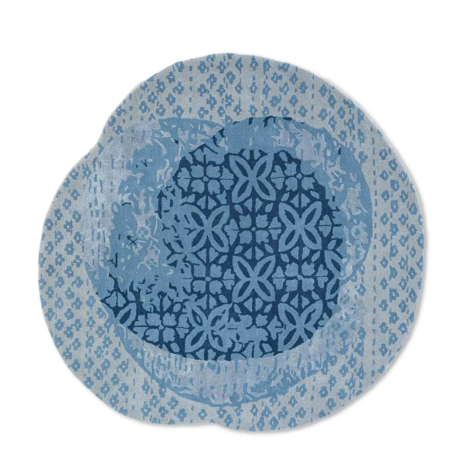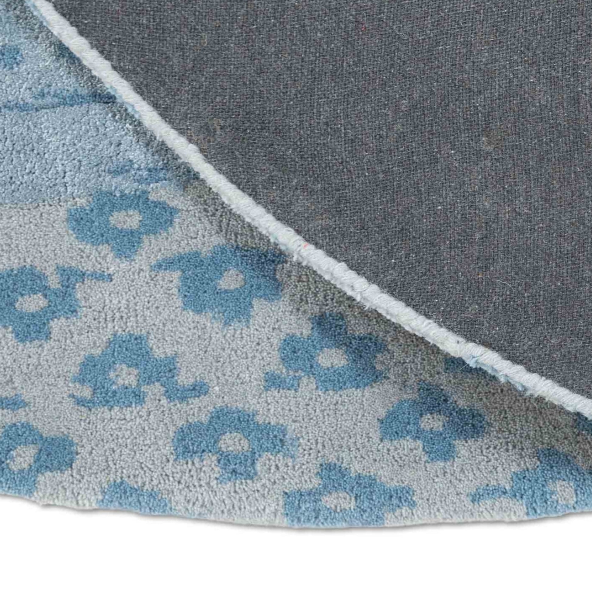 The Sapphire Bloom Round Rug is a symphony of deep cobalt tones and delicate motifs, circling outward like the petals of a mythical blossom. Anchored by a floral-medallion center and framed by a lace-like border of scrolling vines, this piece evokes timeless Persian artistry with a contemporary twist. Its round silhouette softens sharp spaces while adding curated charm.